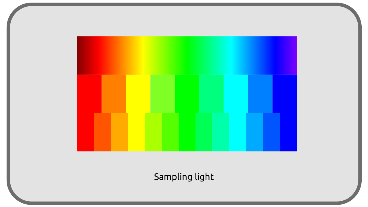 In binary numerics, any value, whether it’s a number or a color, must be stored in a sequence of zeros and ones, which are called bits*2. It’s therefore impossible to represent the whole set of real numbers in numerical form, and we have to quantify, to cut the infinite number of colors we can see into a finite number of numerical values. This is sampling.