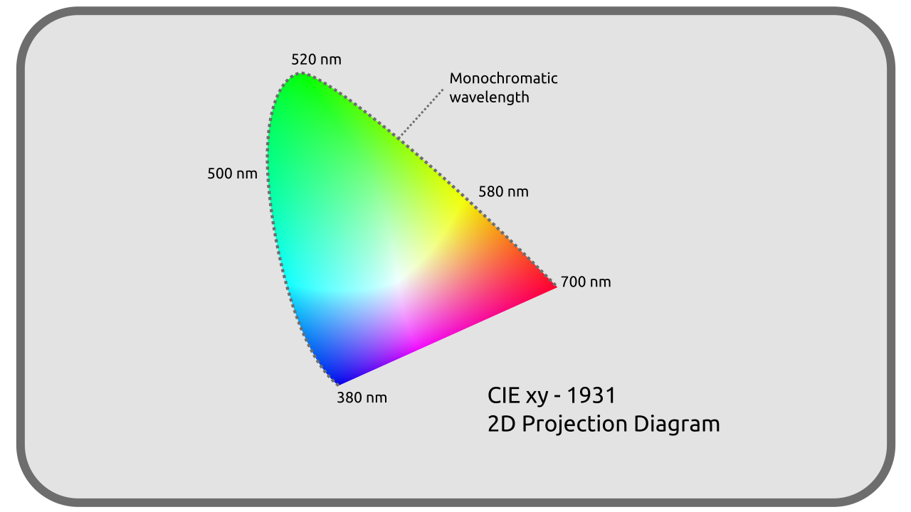 This outline contains all possible monochromatic lights, while the inside of the diagram represents “blended” colors as we perceive them.