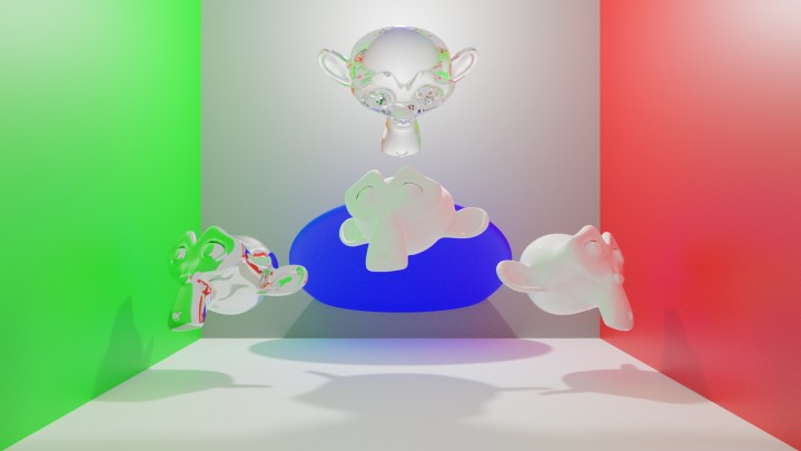 b. Rendu avec gestion des couleurs, dans l’espace de travail Filmic (réglage “Medium-Contrast”).