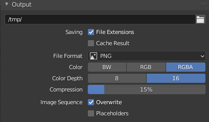 Blender n’affiche pas d’option de couleurs (à part quelques modes et la profondeur) pour la sortie des images ; il utilise l’espace standard du format de sortie (sRGB pour les formats image, données brutes linéaires en OpenEXR)