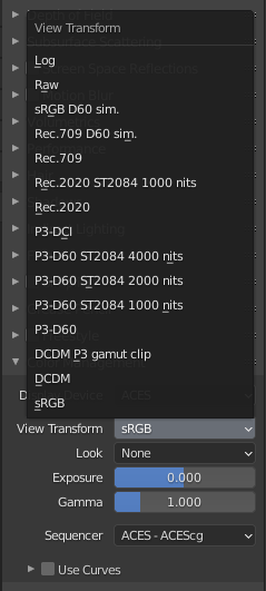 - Display Device ne contient plus qu’une seule option, ACES. Ce n’est pas très standard dans la manière de fonctionner, mais ACES est fait comme ça…
