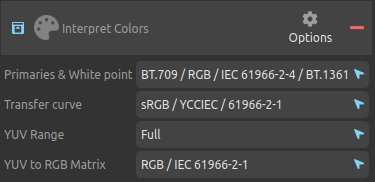 En l’absence du bloc Interpret Colors, DuME utilise ses propres règles pour “deviner” l’espace à utiliser, en respectant les standards les plus courants, ce qui rend ce bloc optionnel si les fichiers en entrée sont standards.